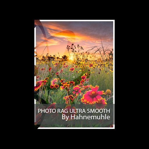 Hahnemuhle Photo Rag UltraSmooth is our second smooth surface fine art paper. In the same category as Breathing Color Pura Smooth, this ultra smooth paper is recognized for its own premium characteristics. Known for its “buttery smooth” feel and exceptional robustness paired with surprising flexibility, Photo Rag UltraSmooth is – like all of Hahnemuhl’s paper – a product of outstanding quality. Lower quality art papers pale in comparison to this paper’s color, base and near lack of imperfections.