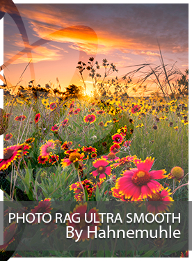 Hahnemuhle Photo Rag UltraSmooth is our second smooth surface fine art paper. In the same category as Breathing Color Pura Smooth, this ultra smooth paper is recognized for its own premium characteristics. Known for its “buttery smooth” feel and exceptional robustness paired with surprising flexibility, Photo Rag UltraSmooth is – like all of Hahnemuhl’s paper – a product of outstanding quality. Lower quality art papers pale in comparison to this paper’s color, base and near lack of imperfections.